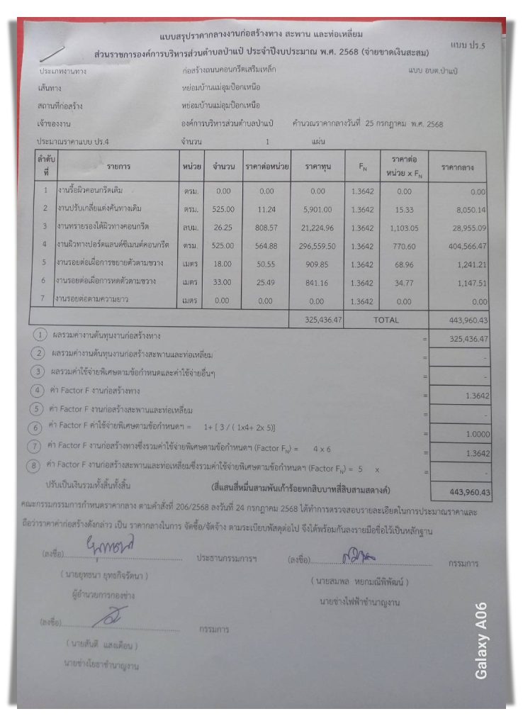 การจัดสรรและราคากลาง โครงการก่อสร้างถนนคอนกรีตเสริมเหล็ก บ้านแม่อุมป๊อกเหนือ หมู่ที่ 12 บ้านแม่อุมป๊อก